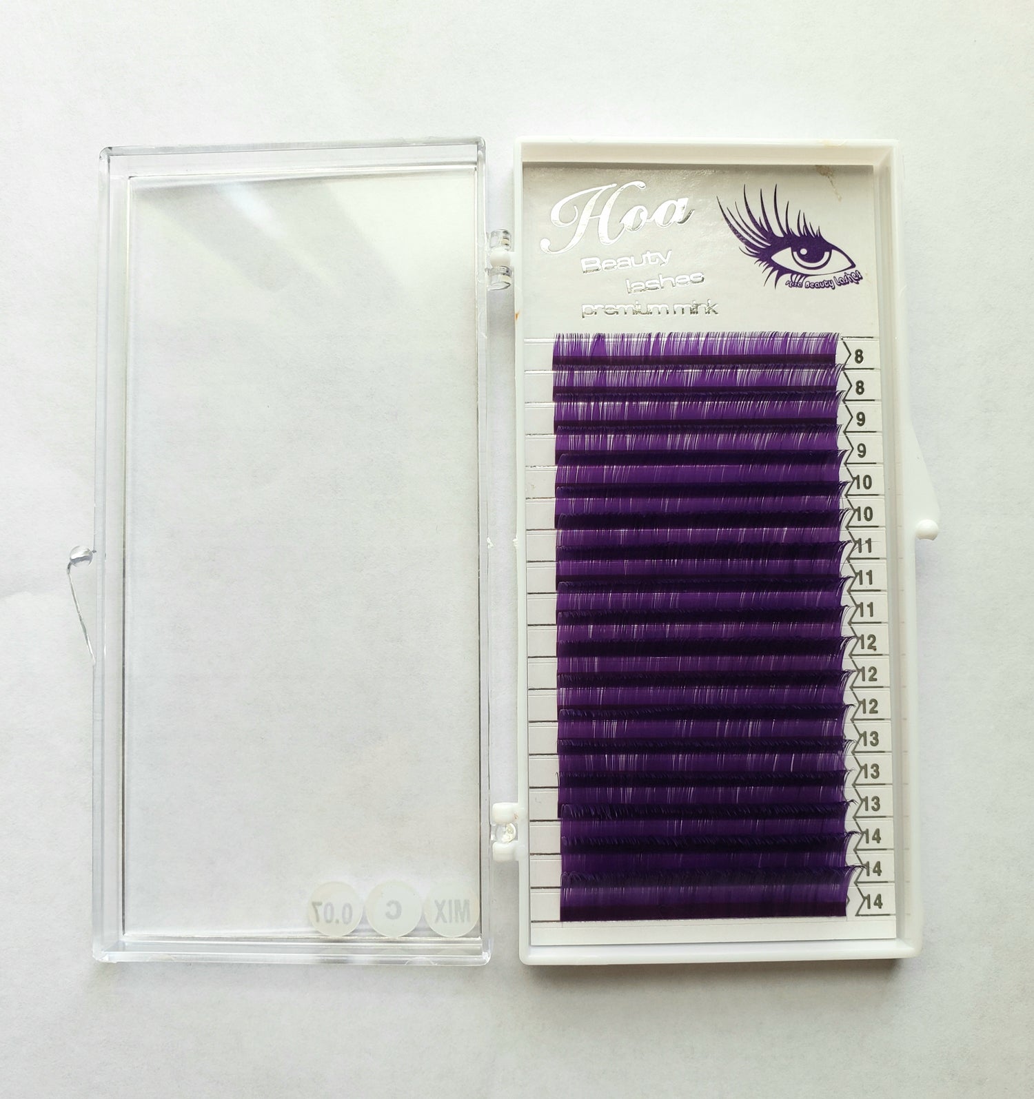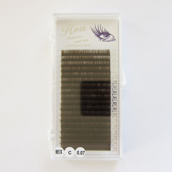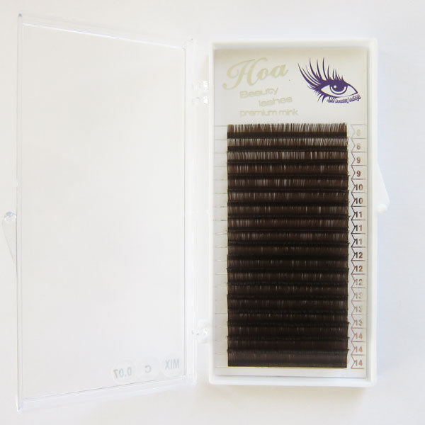 This is a mixed length lash tray. In one tray, you will find all the length from 8mm-14mm, color is brown, thickness 0.07mm. You choose the curl of your need C-curl or D-curl.