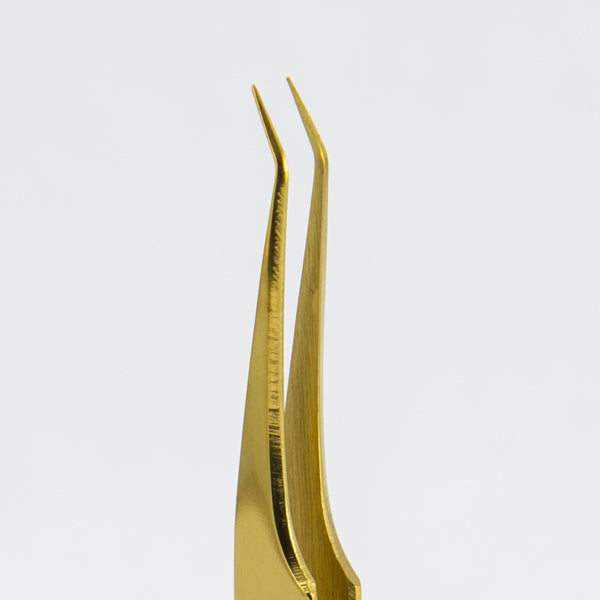 This is a manual tested L-45 degree tweezer which provides three functions: lash isolating, eyelash classic extension and volume extension up to 2D or 3D. The thin blades provides more visibility when doing fan or volume lashes.